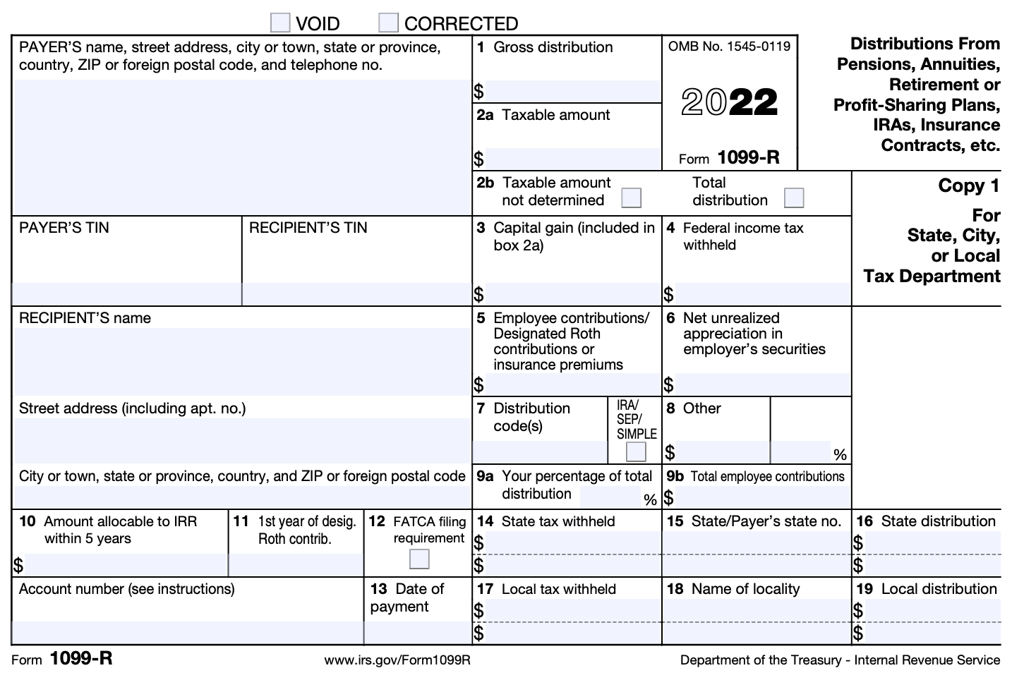 The most important boxes in the 1099R for most people are: